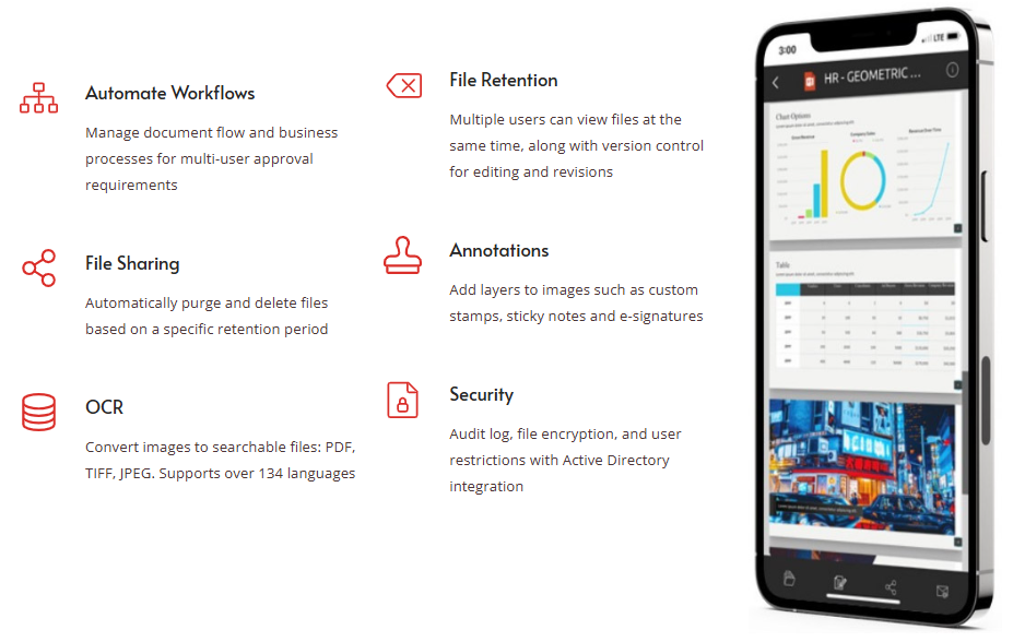 Most popular ECMs will offer mobile-friendly interfaces so you can access your documents at any time.
