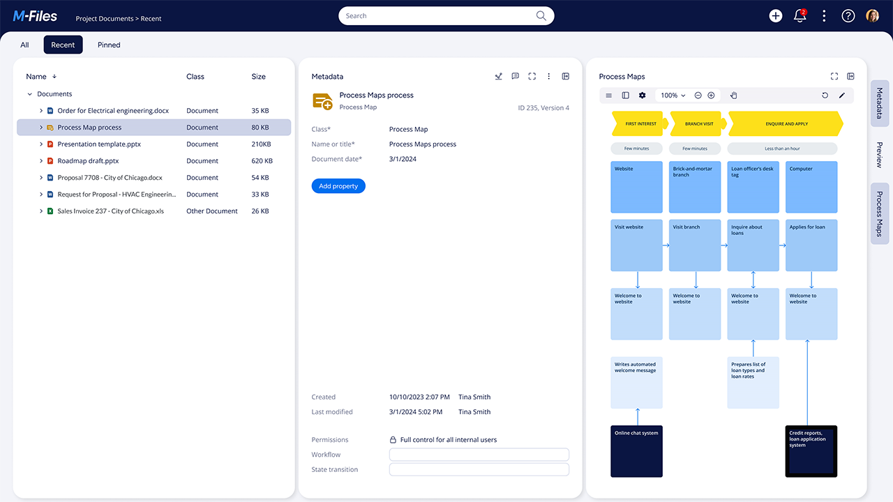 With M-Files, you can build custom workflows for document approvals, quality checks, or legal sign-offs, complete with automated notifications and audit trails.