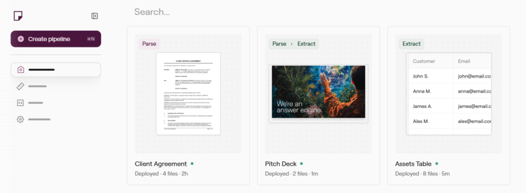 The platform emphasizes accuracy, transparency, and governance, making it particularly suited for regulated industries like finance, healthcare, and legal. It supports end-to-end workflows through modular APIs that handle parsing, splitting, and extraction, while also enabling downstream automation such as compliance checks or reporting.