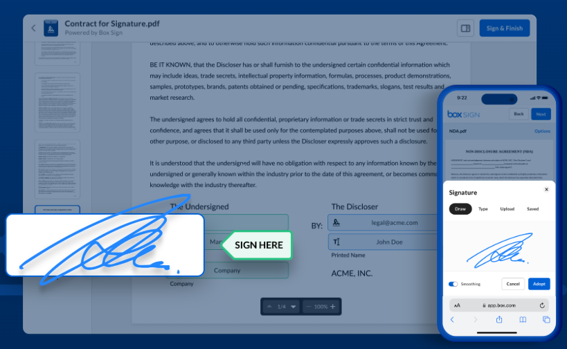 Sales teams use Box Sign to speed up deal closures, HR departments streamline hiring and onboarding, legal teams standardize contracts and reduce risk, marketing teams manage agency agreements, and finance teams handle approvals and audits with greater visibility.