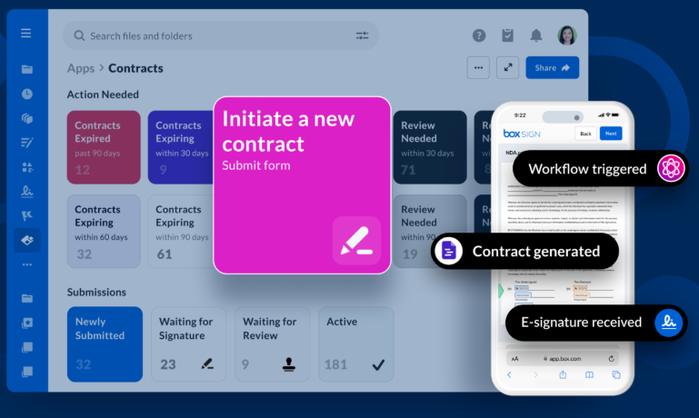 Prebuilt templates allow you to get started quickly, while configurable logic supports more complex, multi-step processes. By reducing manual handoffs and standardizing execution, Box helps reduce errors, shorten cycle times, and improve operational efficiency.