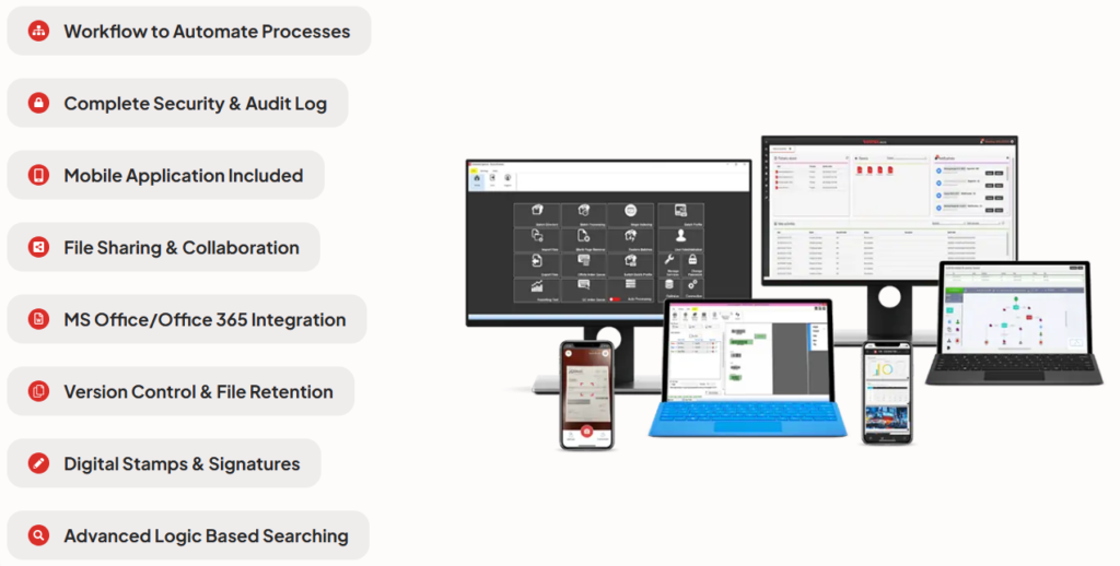 A DMS enables secure collaboration by allowing authorized staff to access documents from anywhere. Features such as role-based access, mobile applications, and Microsoft Office integration ensure productivity without compromising security.