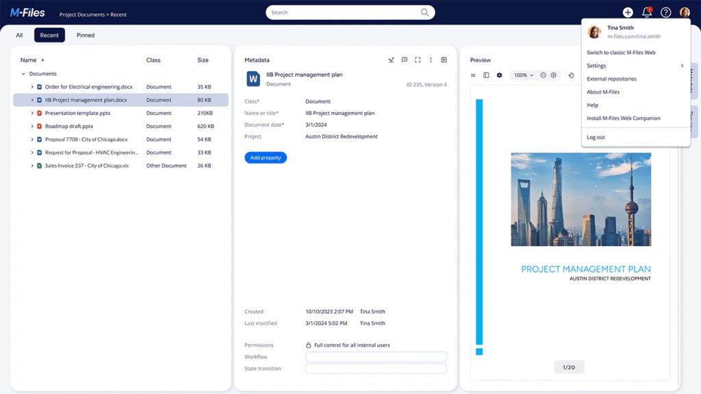 Instead of relying on traditional folder hierarchies, M-Files organizes files based on “what” they are, not “where” they are stored.