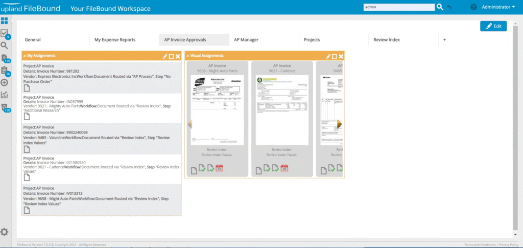 OnBase can also be used in, such as routing invoices from AP to procurement and finance automatically.
