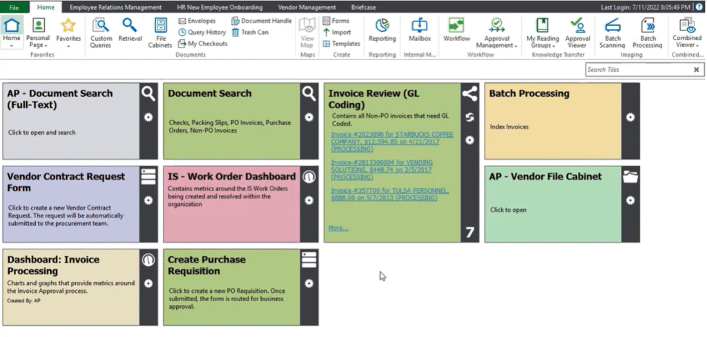 OnBase also delivers customizable dashboards where you can see important data without sifting through your files.