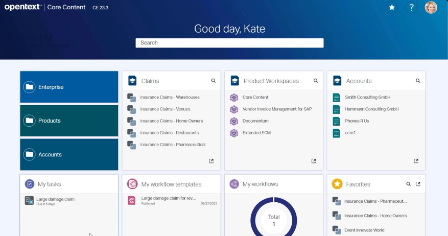 OpenText offers many different products tailored to different departments and needs, but here, we will be focusing essentially in the Content product, where we can find content and document management features.