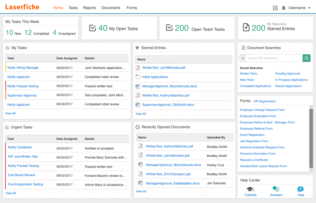 Laserfiche es un ECM enfocado en la automatización de procesos y la gobernanza. Está diseñado para grandes organizaciones con procesos multinivel y estrictas regulaciones.