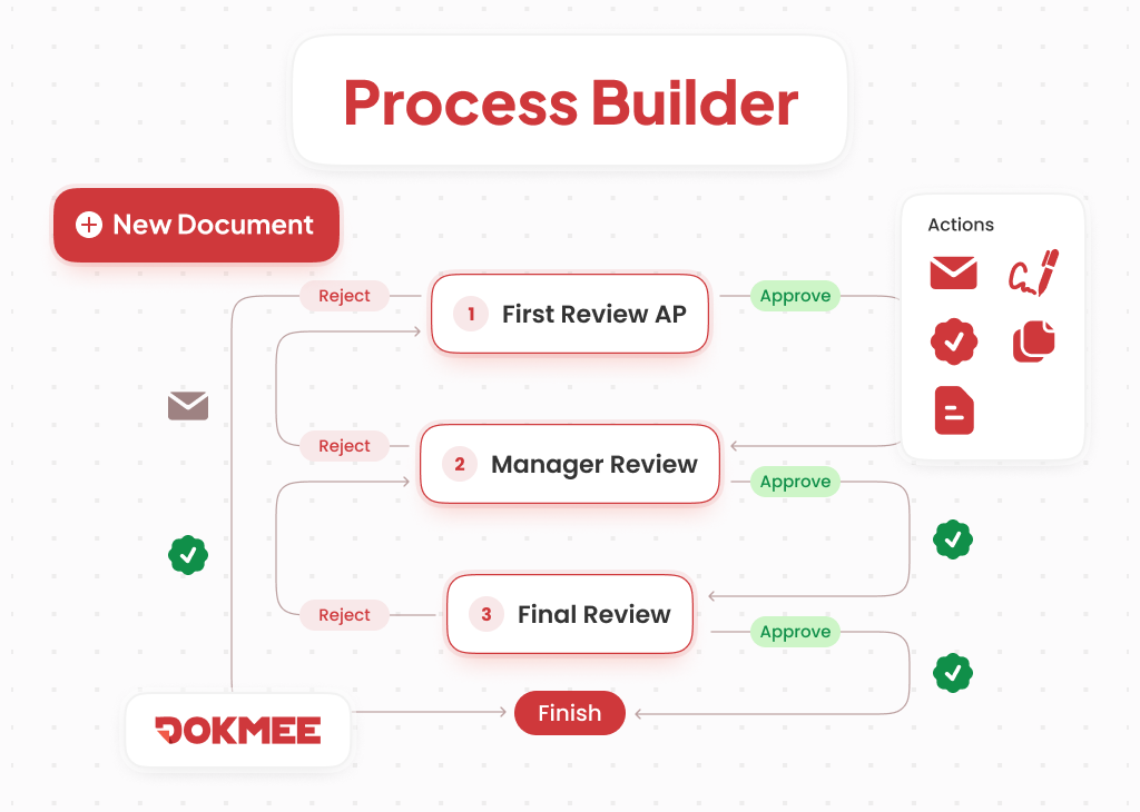 O mecanismo de fluxo de trabalho do Dokmee simplifica a criação de qualquer processo de negócios de forma intuitiva.